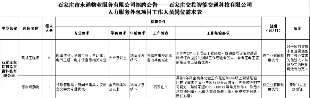 2、本次公开招聘外包人员工作由石家庄永通物业服务有限公司统一组织实施。