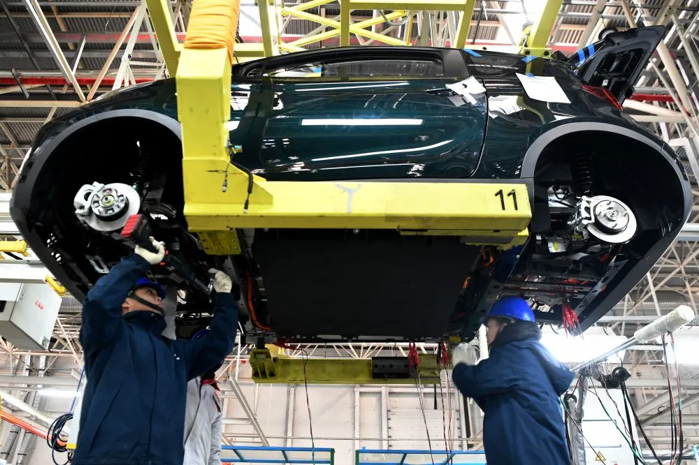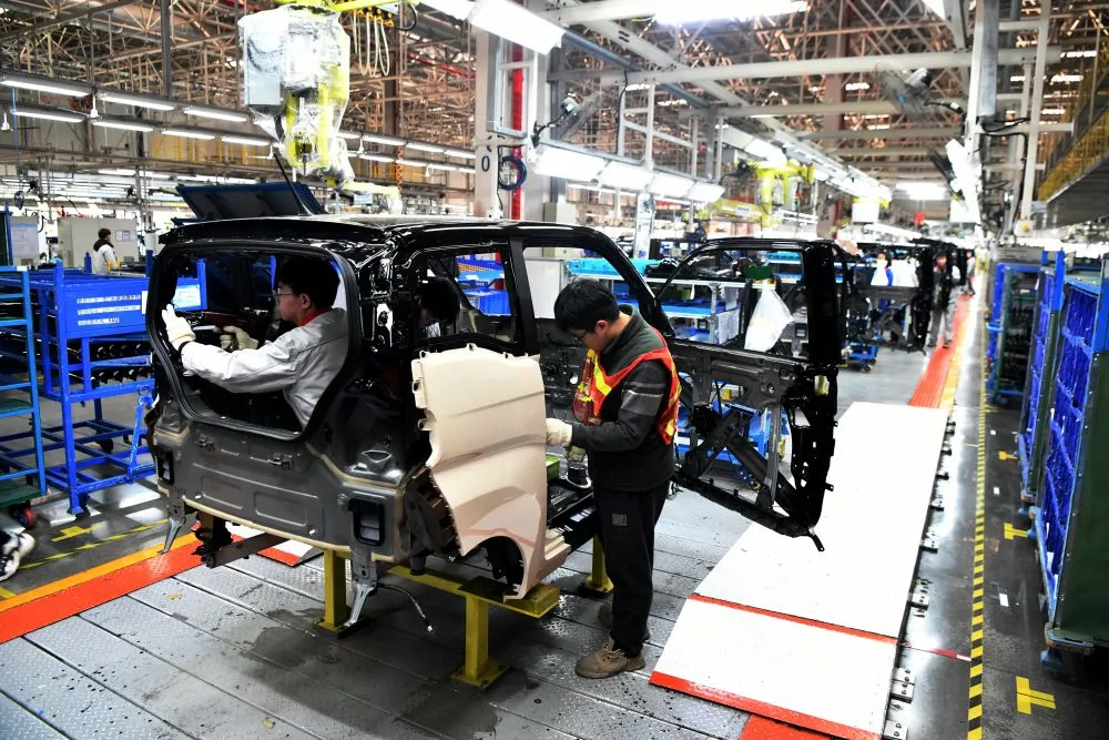 12月24日,工人在位于石家庄市栾城区的奇瑞新能源汽车股份有限公司石家庄分公司总装车间内组装电动汽车。