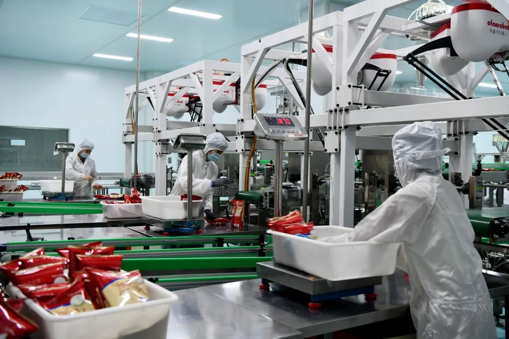 12月23日,工人在石家庄市栾城区的石家庄鑫源饮品有限公司全自动包装车间里忙碌。
