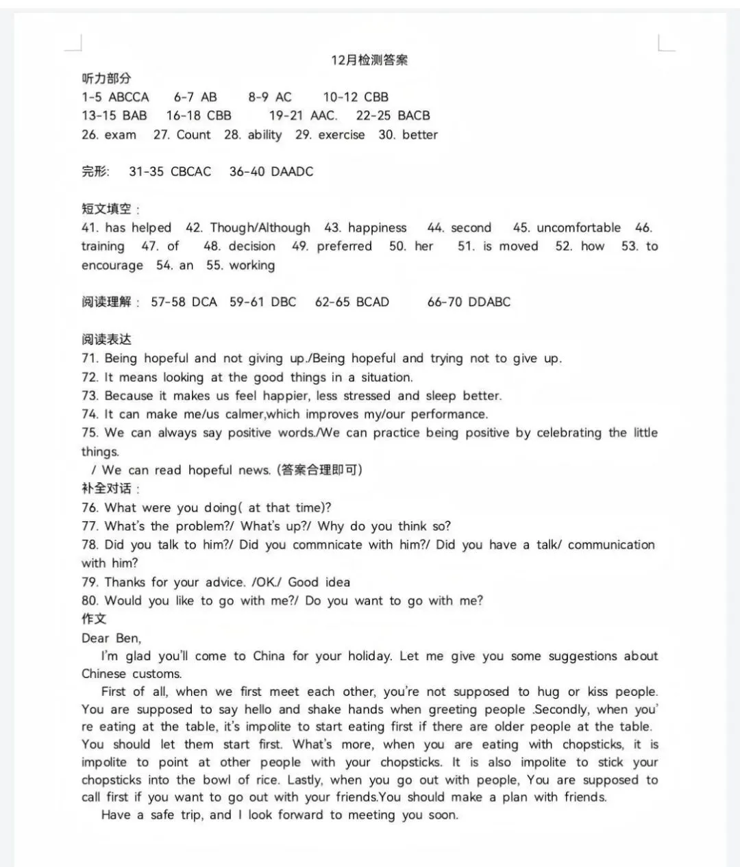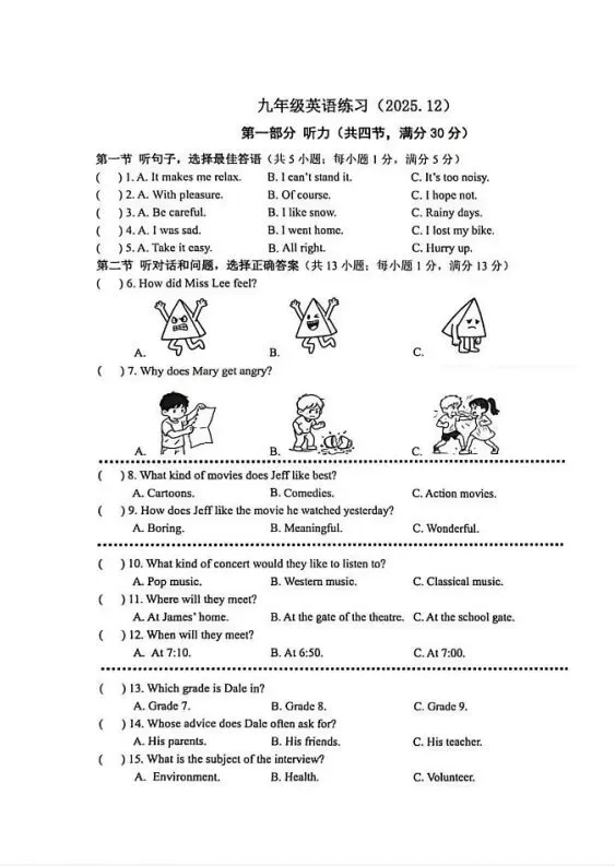 石家庄28中2025-2026学年九年级上学期12月月考英语试题