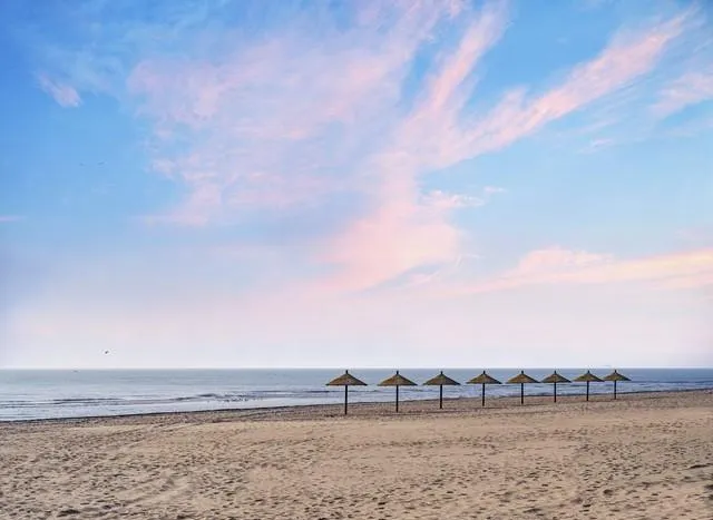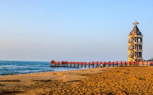 北戴河的风,却是另一种调调。这里的海滩柔软,坡度缓缓,孩子们在浅水区追着小螃蟹跑,大人泡着脚,偶尔拾起一块贝壳,都会觉得生活温柔了几分。鸽子窝公园的日出,是这片海最美的时刻。天刚蒙蒙亮,海面还像一块未打磨的镜子,太阳一点点冒头,把海水镀成金色。站在礁石边,鞋底刚被海水轻轻打湿,耳边是海鸟的叫声,整个人都被这片光晕包裹住,仿佛时间都慢了下来。
