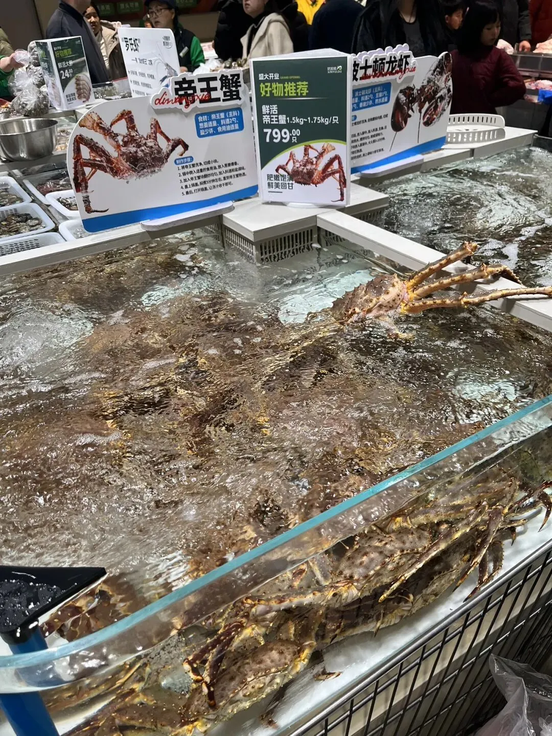 今天专门去逛了逛,人真的超级超级多,物品种类很全,最近这两天特别优惠很多东西都在搞活动。性价比很高的有青虾仁65三斤!智力双J车厘子5斤119,还有帝王蟹、小澳龙、罗氏虾