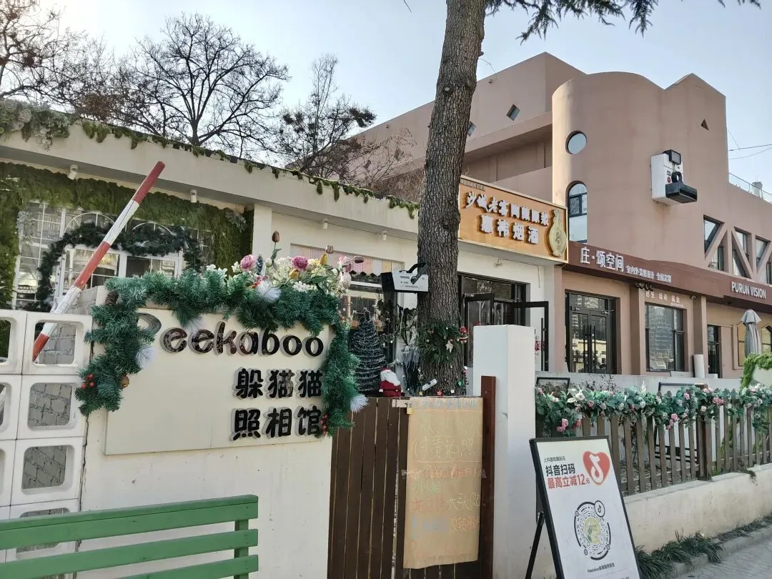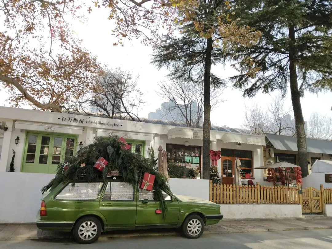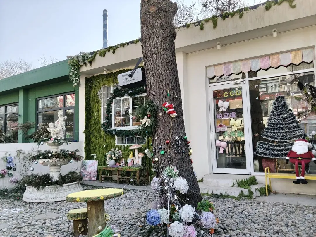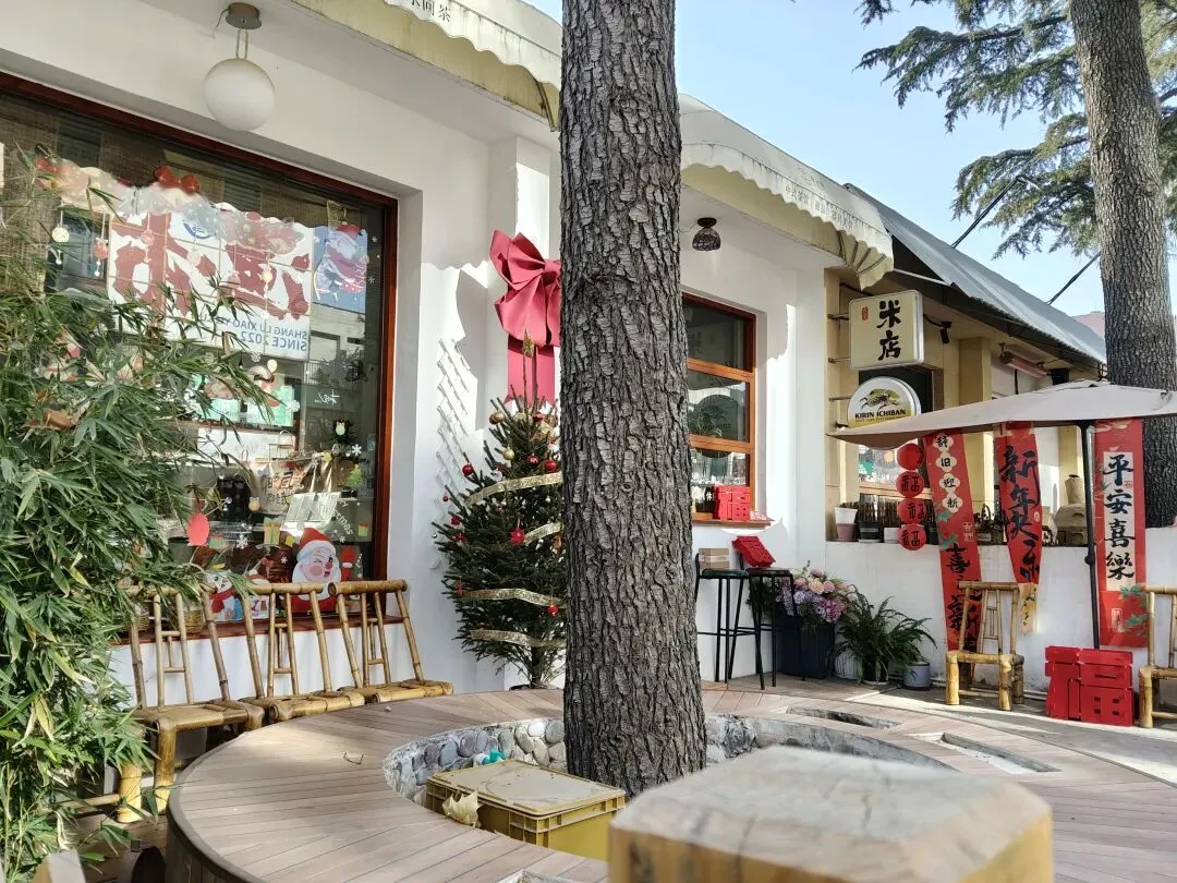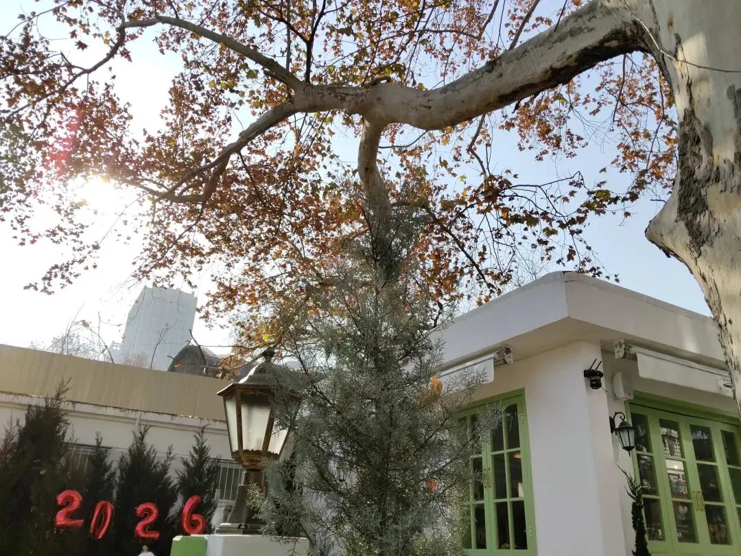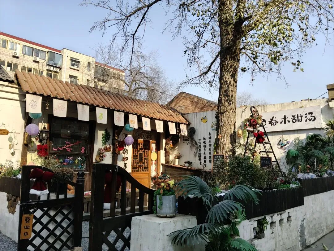 刚一进大门,只见左手边上、这家咖啡店门前小院打卡人还挺多。我的视角停留在了白房、绿窗、老树上,这三者合一,很是漂亮!我感觉一个手机镜头根本盛装不下它们的美……