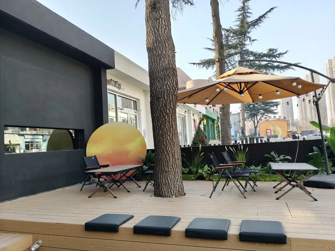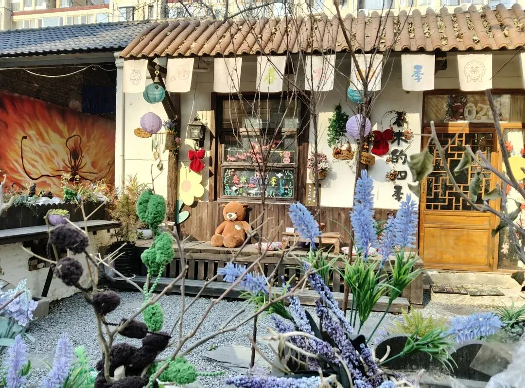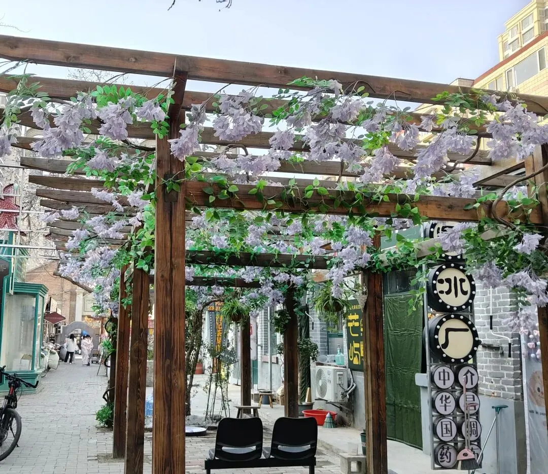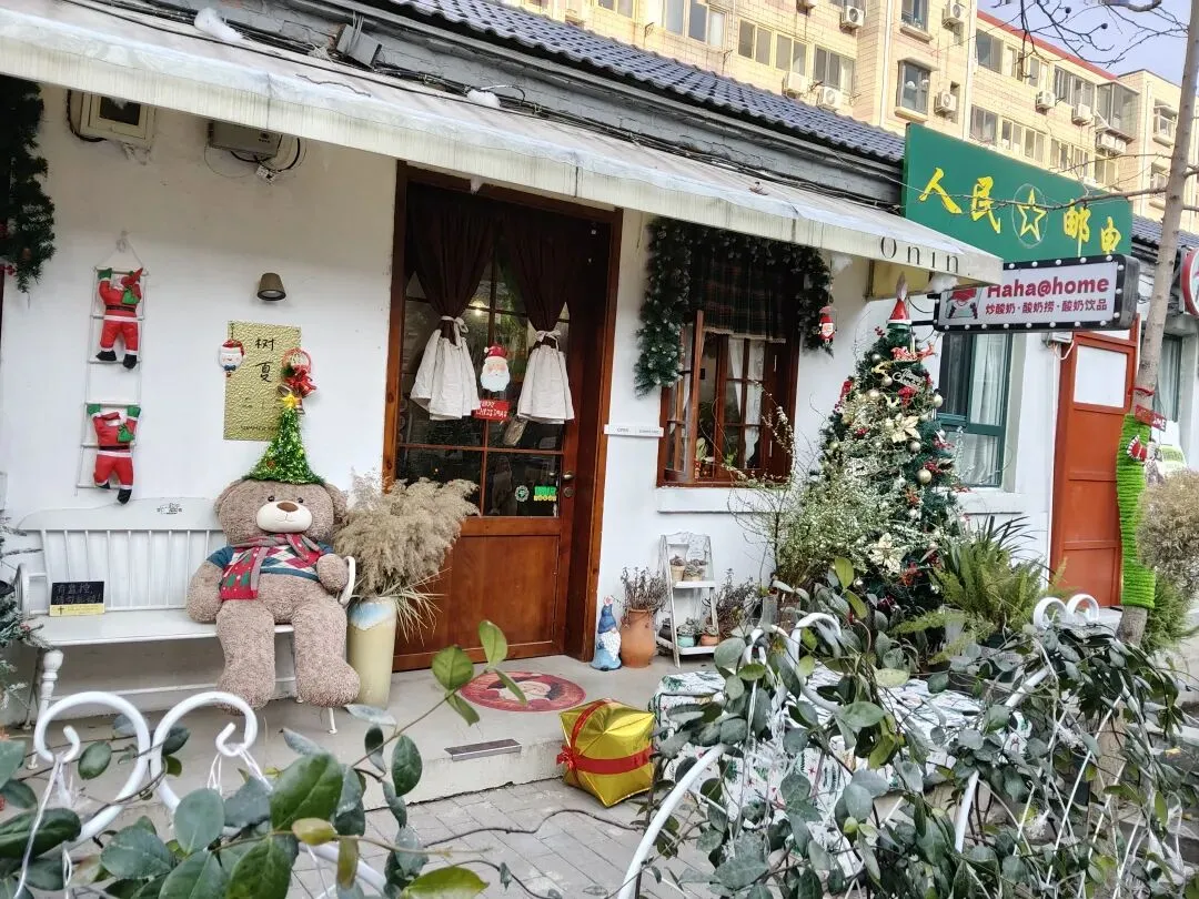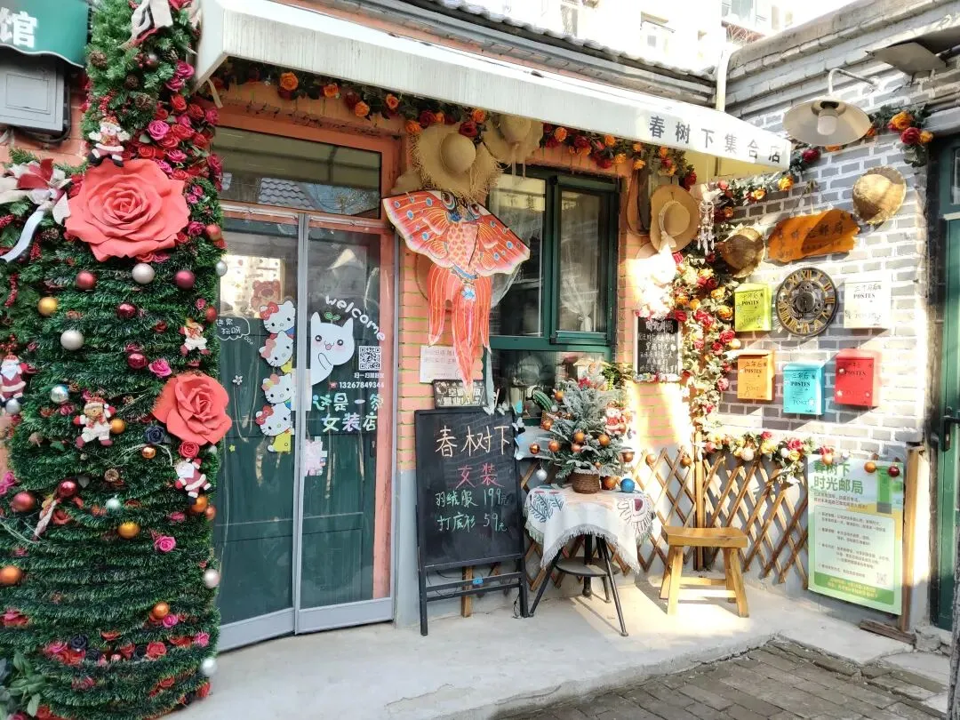 刚一进大门,只见左手边上、这家咖啡店门前小院打卡人还挺多。我的视角停留在了白房、绿窗、老树上,这三者合一,很是漂亮!我感觉一个手机镜头根本盛装不下它们的美……