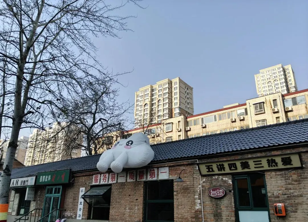 出了外贸街6号,沿外贸街一直往南走,过了光华路就是青园街。青园街路东、看现场这样子,应该也是织音1953的地盘了……在这里,见着一位在此干活的师傅、问了问究竟~他说,这里目前还没有开业,听说这将来是个展览馆什么的~