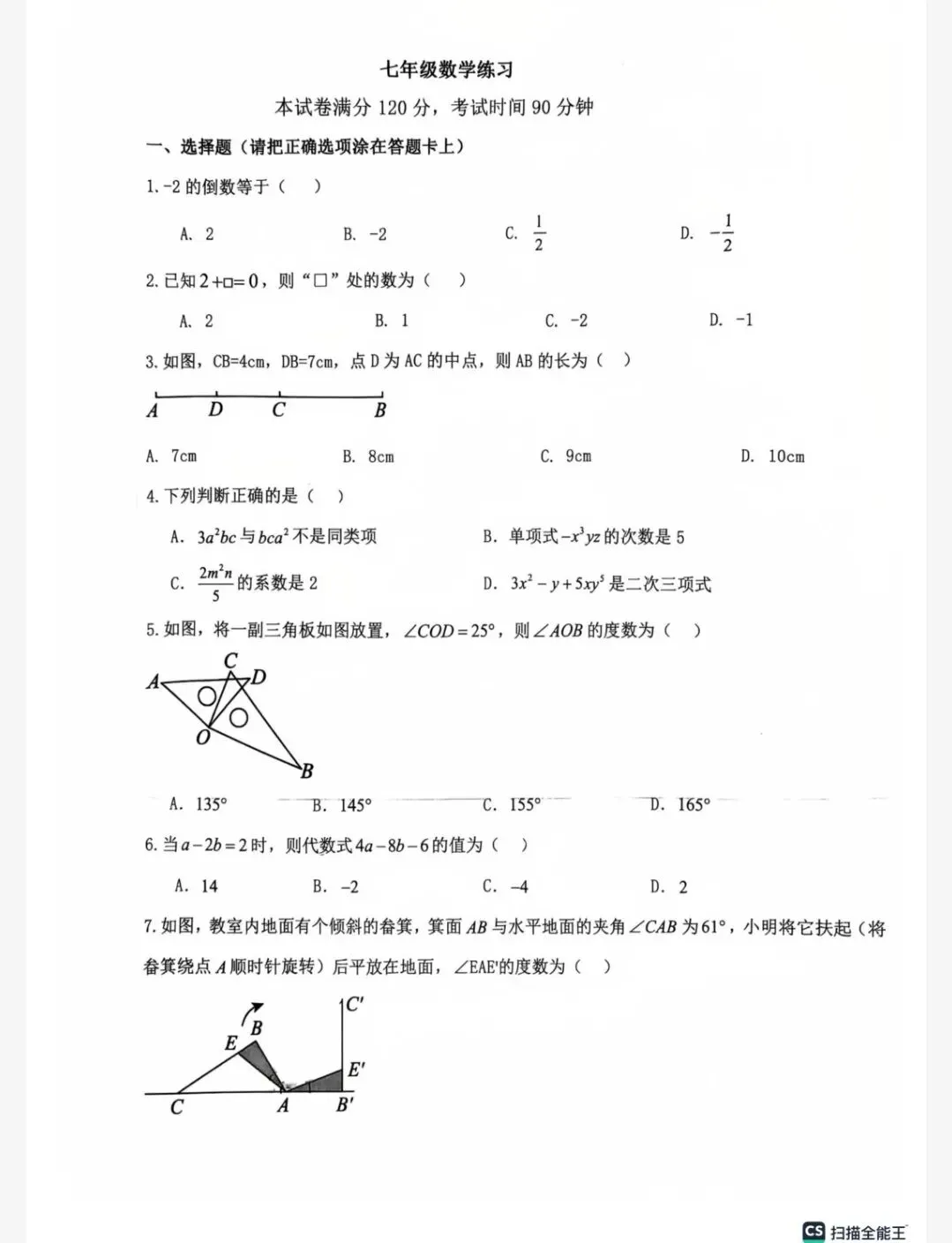 【七上三阶】 2025-2026学年河北省邢台市七年级上学期12月阶段练习二含答案(冀教版)