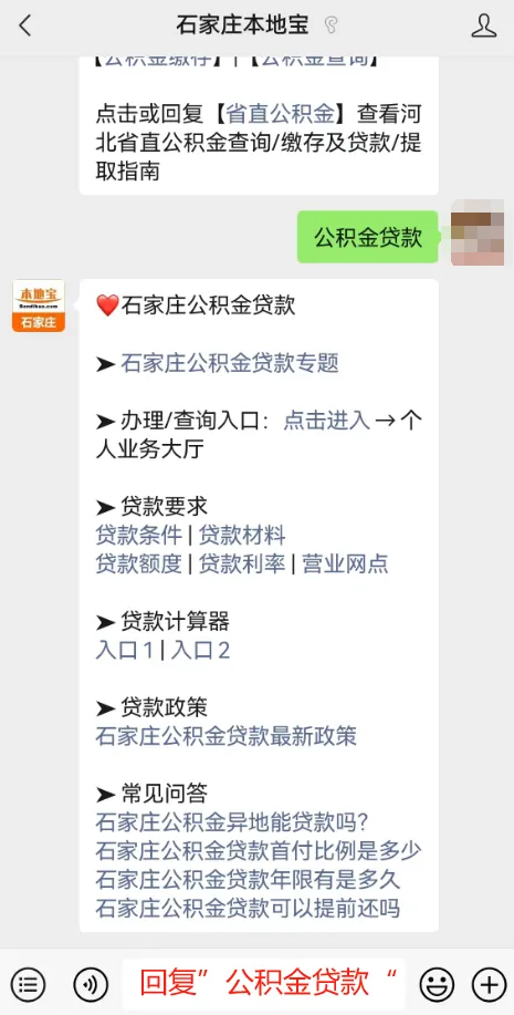 在聊天对话框回复【公积金贷款】