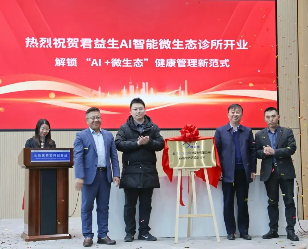 12月28日上午,河北省首家深度融合AI智能与肠道微生态技术的专业线下诊疗机构——君益生AI智能微生态诊所,在位于石家庄高新区的石家庄市国际生物医药园举行揭牌仪式,标志着健康管理行业开启了“AI+肠道微生态”深度融合的诊疗服务新模式。活动现场汇聚了来自医疗机构、行业协会的专家学者和相关负责人近百人。