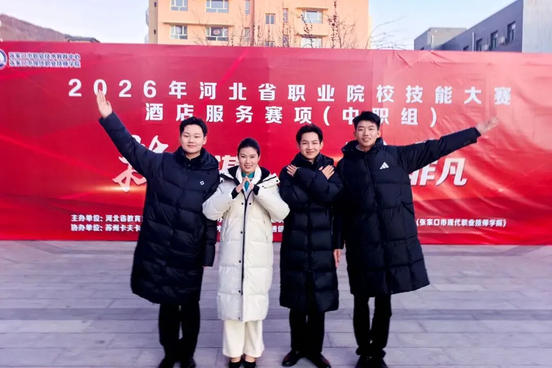 本次比赛是新旧赛制结合的首次尝试,围绕酒店服务核心岗位技能,涵盖中式铺床、前厅接待、中式摆台和项目展示四个关键模块,全面考察选手的操作技能、服务礼仪、沟通协调及创新应用能力。我校李天航、鹿奥松、李旭冉、赵雅飞四名选手,在指导教师郭晓梅、赵家萱的精心指导下,从操作流程的精准把控到服务细节的精益求精,从应急场景的灵活处置到项目展示的创意打磨,赢得了在场评委的一致好评。