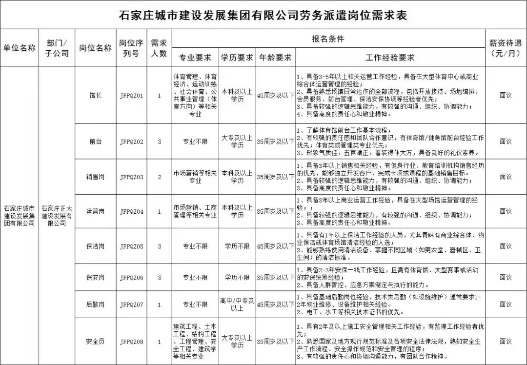 根据工作需要,石家庄城市建设发展集团有限公司特委托石家庄市国经人力资源管理有限公司面向社会公开招聘劳务派遣制人员15名。现将具体招聘流程设定如下: