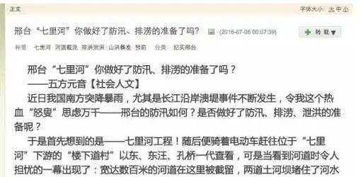令我感到震惊的是,河北邢台的河道治理工程和水利、土地监管如此糟糕,糟糕到了已经是任何一个有眼睛的人都不能无视的地步。而整个邢台地区的官场,负责这些项目的部门却鼾声一片,没有一个相关人员想到要提前做点什么,甚至没有人发出呼吁。唯一一个在事前发出警报的,竟然是一个没有半点职务的邢台普通老百姓。然而他人微言轻,其呼声被淹没在了浩瀚的网络信息当中。