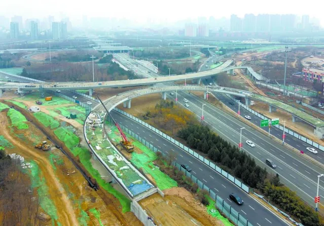 位于裕华区和高新区两区交界处的复兴大街与裕华路互通立交,为复兴大街市政化改造项目中的一项重要工程,施工人员目前正加快推进复兴大街裕华路互通辅路桥、调转车道建设,确保复兴大街辅路工程按期完工。