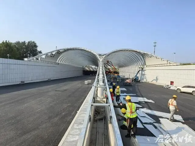 据介绍,1.215公里长的白佛隧道,是双向十车道超宽结构隧道,目前隧道已经建成通车,人们已领略它的魅力。隧道正上方正在建设公园绿地,两侧辅路为双向四车道,整体达到双向十四车道,是整个复兴大街市政化改造工程中最宽的路段,被形象地称为复兴大街乃至石家庄市的“城市之眼”。