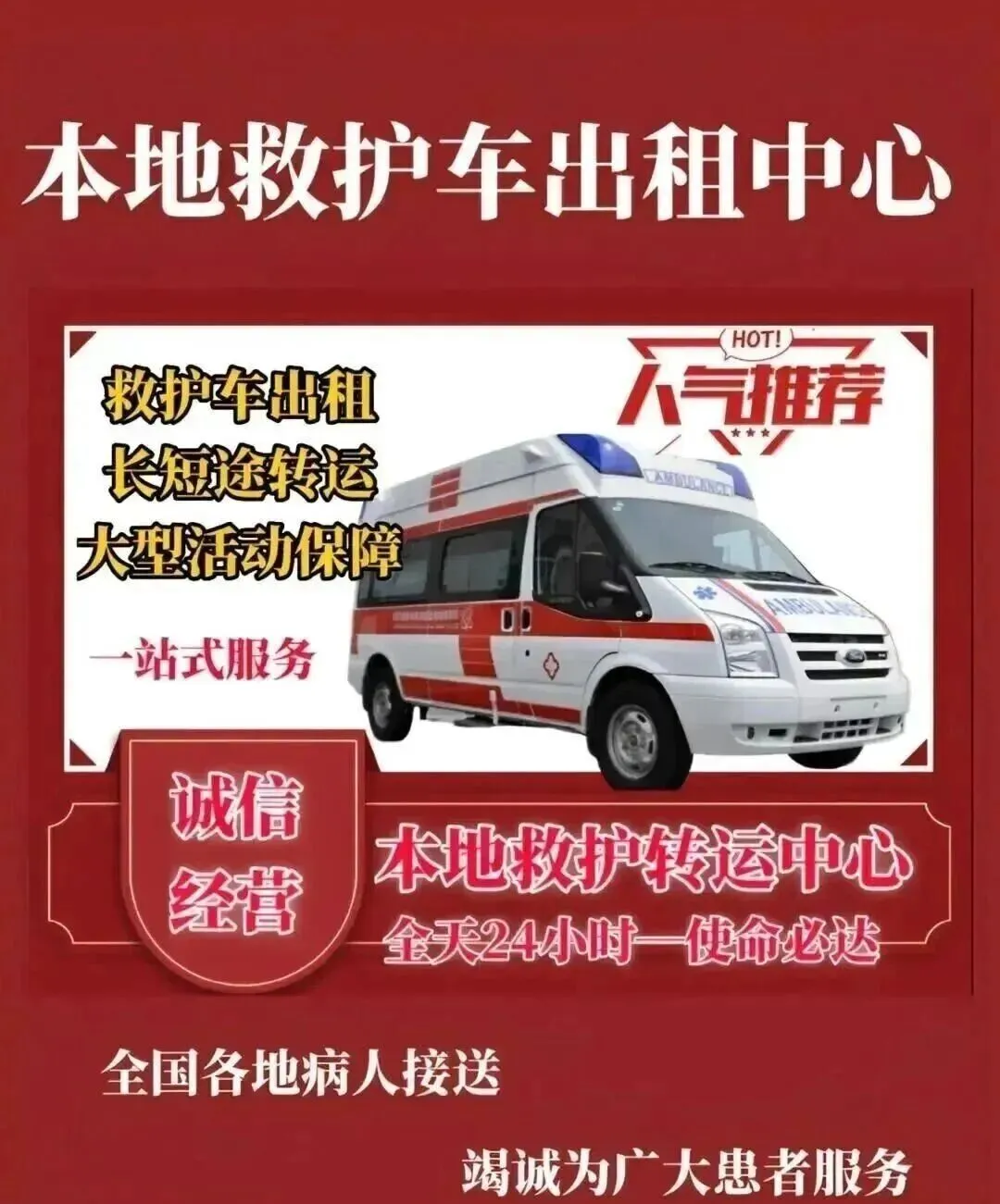 你是否还在为行动不便者就医出院发愁?是否在筹备赛事时,担心缺少即时医疗防护?是否有跨省转院、遗体转运的特殊需求,却找不到合规专业的团队?