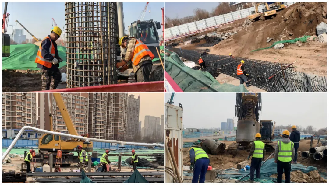 项目建设工作现已全面启动。截至目前,57号地块支护桩累计完成411根,降水井完成12口,土方开挖完成5%,南侧桩头开挖破除完成;55号地块支护桩累计完成136根。