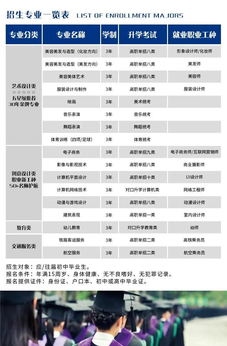 ①初三生及应往届初中毕业生;高一、二转学生;想通过技能学习实现升学/就业的学生。