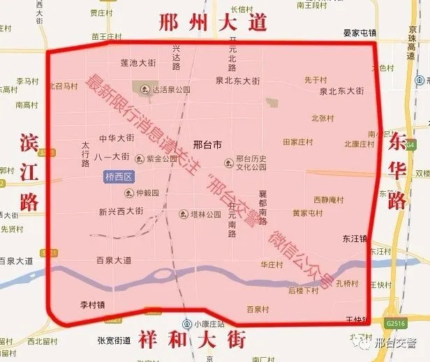 滨江路、邢州大道、东华路、祥和大街(含上述四条道路)的围合区域。