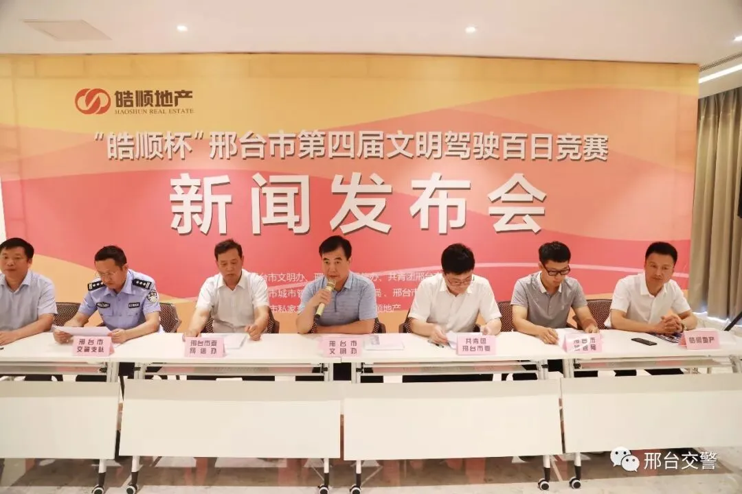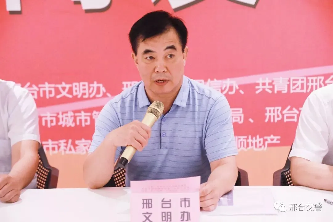 为推动全国文明城市创建工作深入开展,深化“美我家乡、文明邢襄”主题创建活动,发动广大市民群众自觉抵制车辆乱停乱放、斑马线不礼让行人等不文明行为,构建和谐交通新风尚。2019年8月6日上午,市文明办、市委网信办、团市委、市城管局、市交警支队联合召开邢台市第四届文明驾驶百日竞赛新闻发布会。