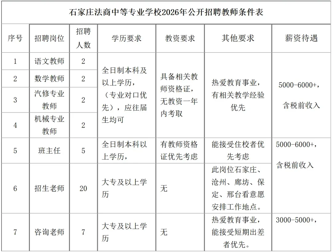石家庄法商中等专业学校2026年公开招聘40名教师公告