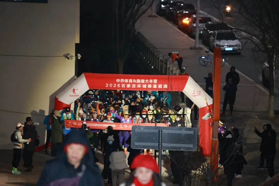 石家庄,2026年1月1日-迎着新年第一缕晨光,"2026石家庄环城绿道超跑"在环城绿道大谈驿站鸣枪开跑。来自华北地区的百余名跑步爱好者齐聚石家庄,用脚步丈量绿道,用汗水迎接新年挑战。