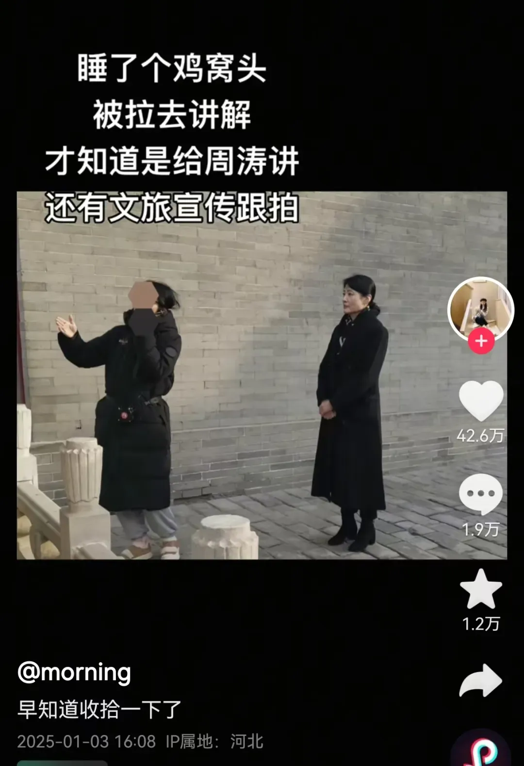 “谢谢大家喜欢我的视频,博大家一笑我也开心。不过不要较真啦,周老师行程很满。周老师来邯郸的时间很短,匆忙行程中我能有机会向周老师介绍家乡,我很荣幸。尽全力讲解,知无不言,也欢迎大家到我的家乡邯郸游玩。哈哈也没想到平时认真营业无人问,一朝鸡窝天下知。”