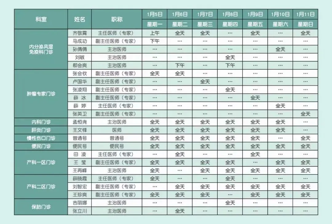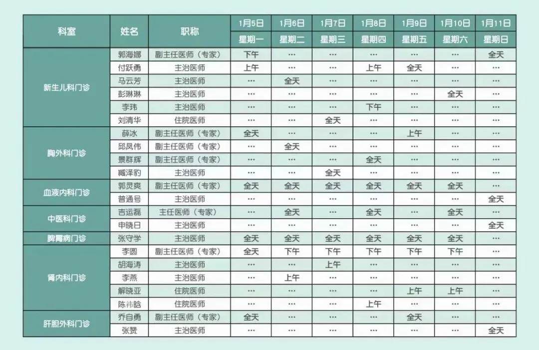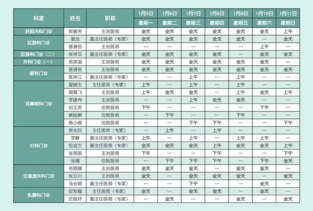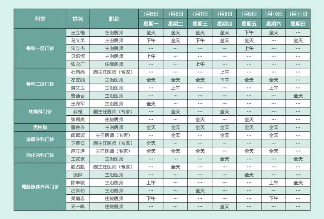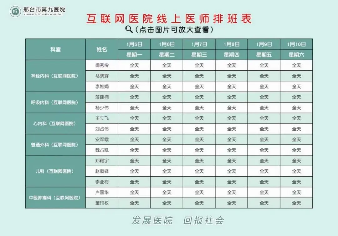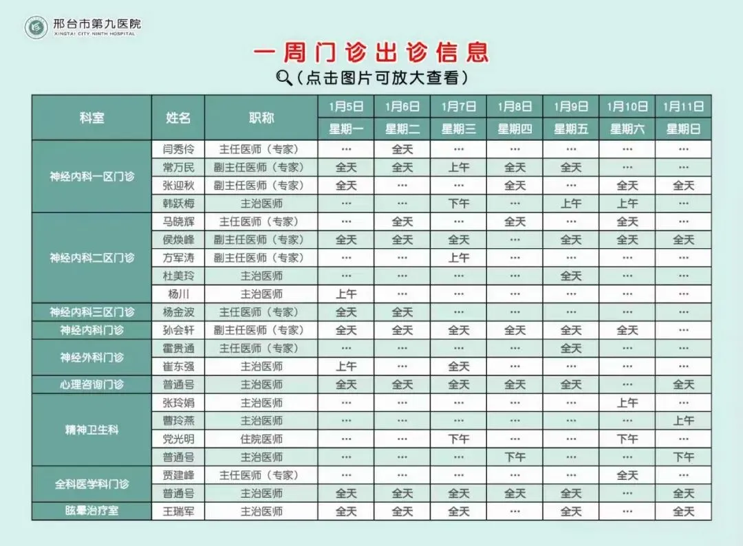 >邢台市第九医院1月5日——1月11日门诊出诊安排