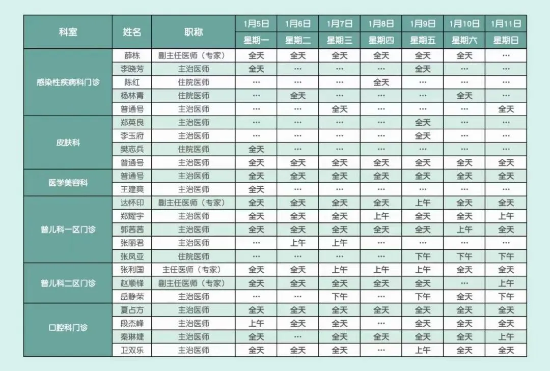邢台市第九医院1月5日——1月11日门诊出诊安排