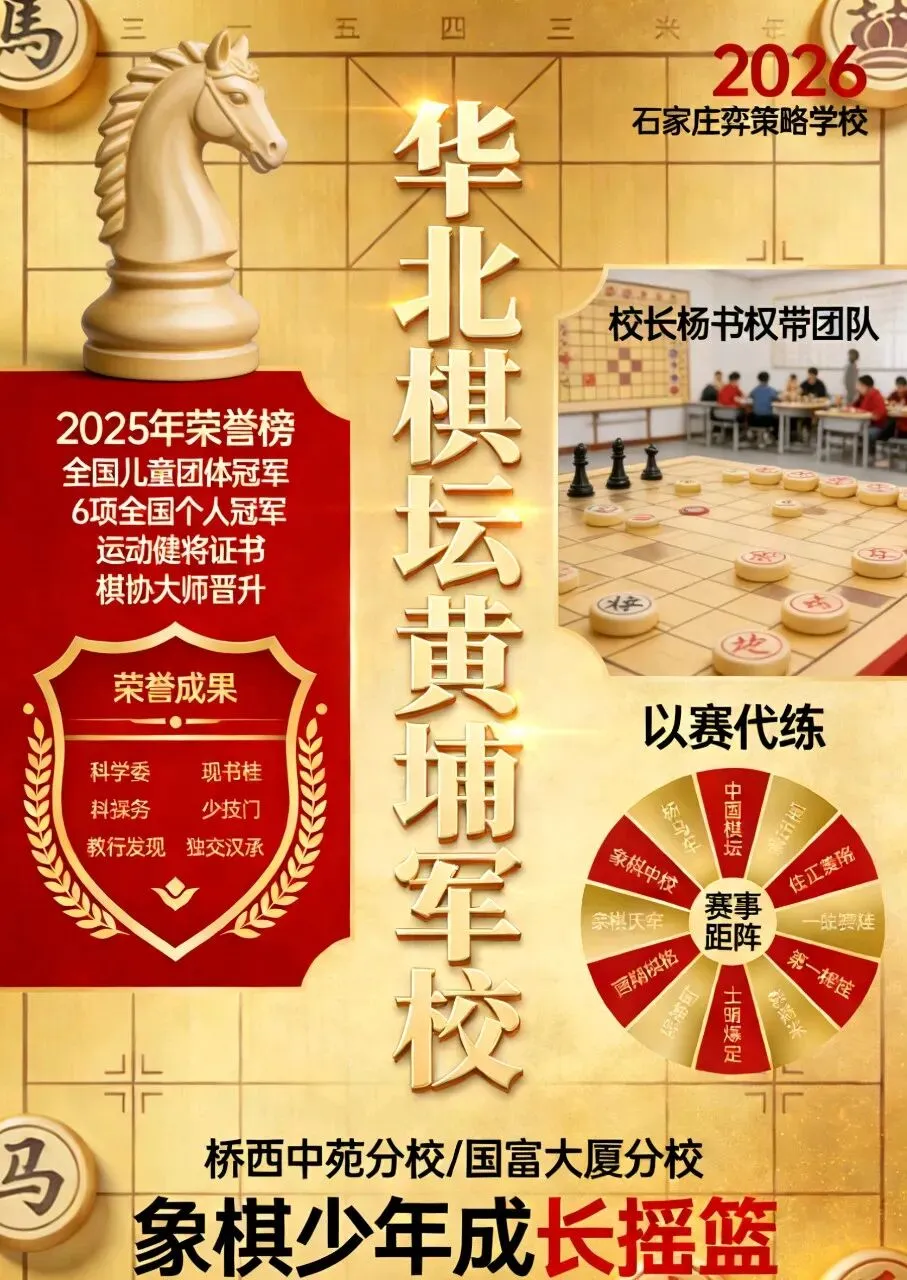 辞别满载荣光的2025,迎来充满希冀的2026。新的一年,石家庄弈策略棋校将依旧与国粹象棋相伴,不忘初心,再创辉煌;与快乐美好相随,矢志不移,再展风姿!