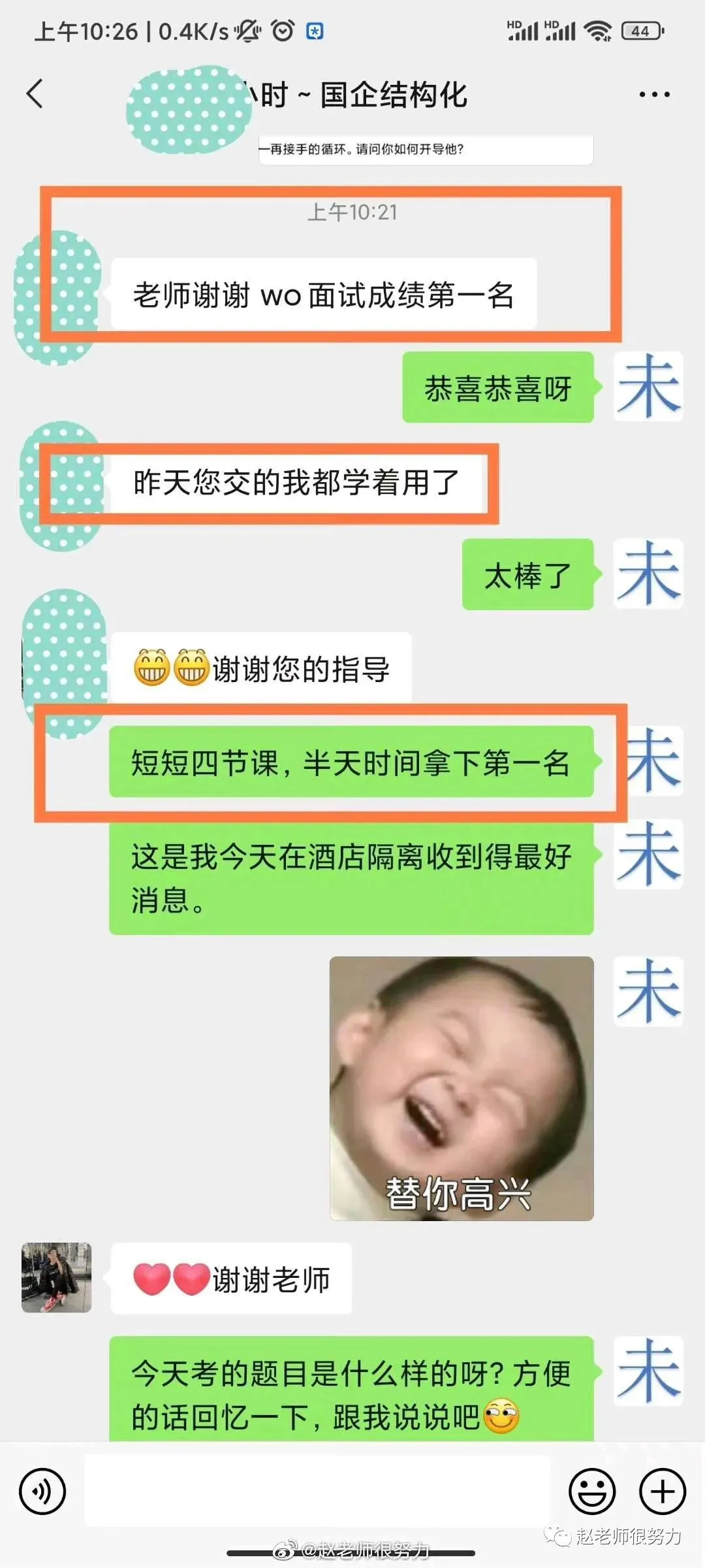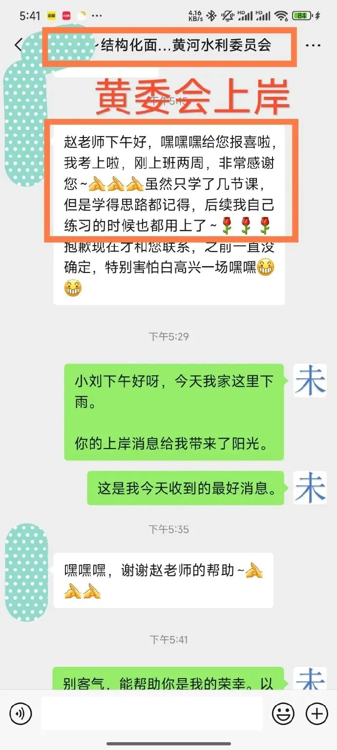 学生基本是零基础备考黄委会(黄河水利委员会)结构化面试,在考前找到我,进行突击准备,我毫无保留给对方进行了授课。师生共同努力,拿下了这场考试。