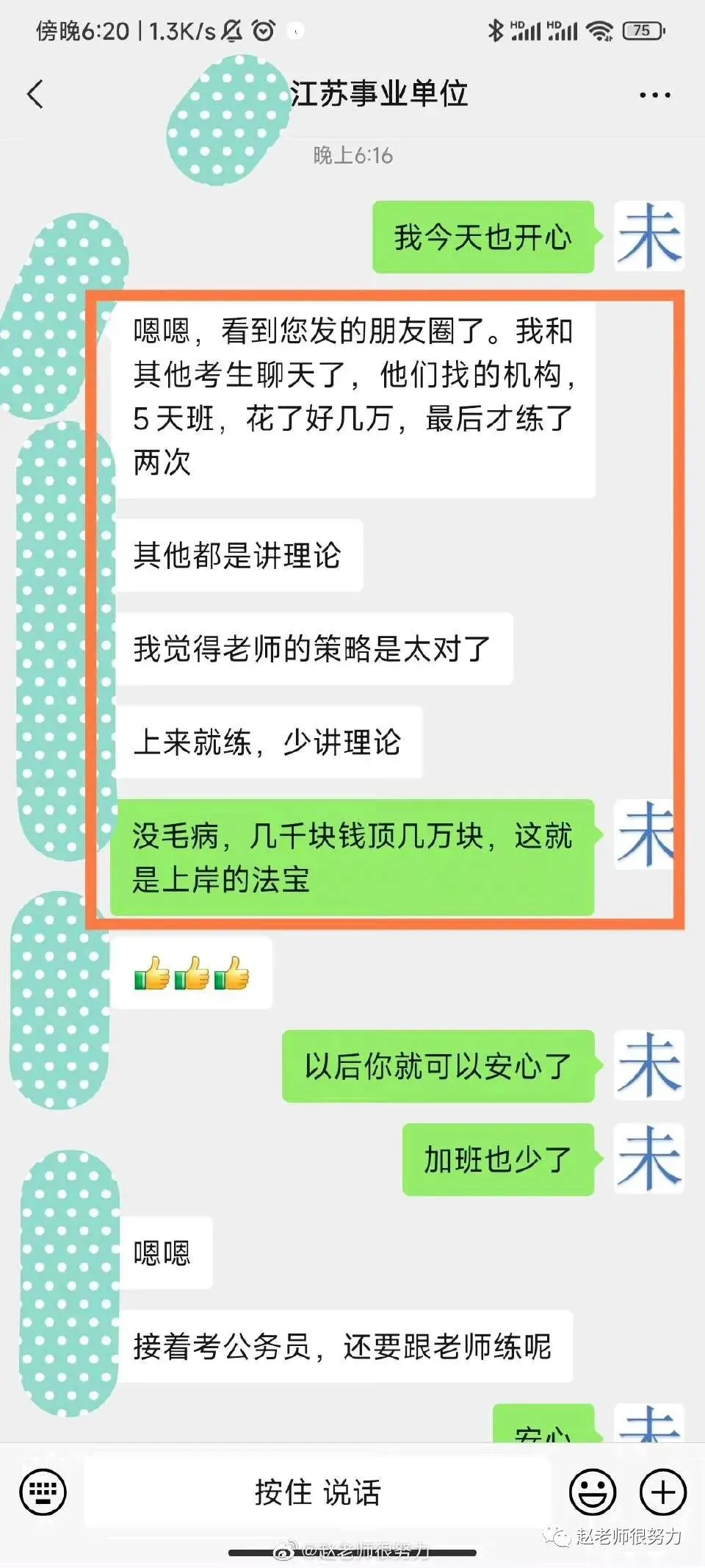更有意思的是,学生上岸后对x公的吐槽,因为面试场上和其他三个报了x公培训班的同学沟通,结果这些人恋考情和要求都搞不清楚,分数一个比一个低。
