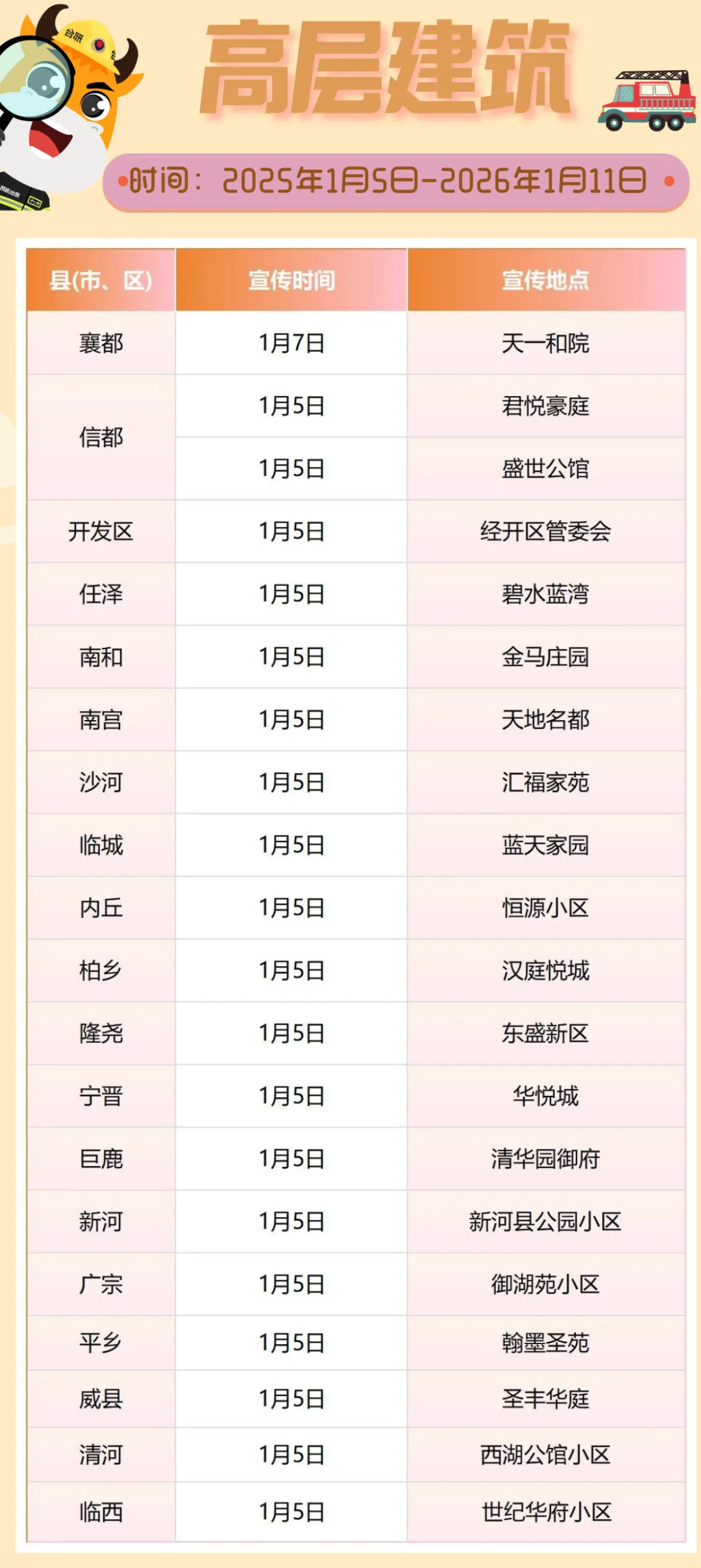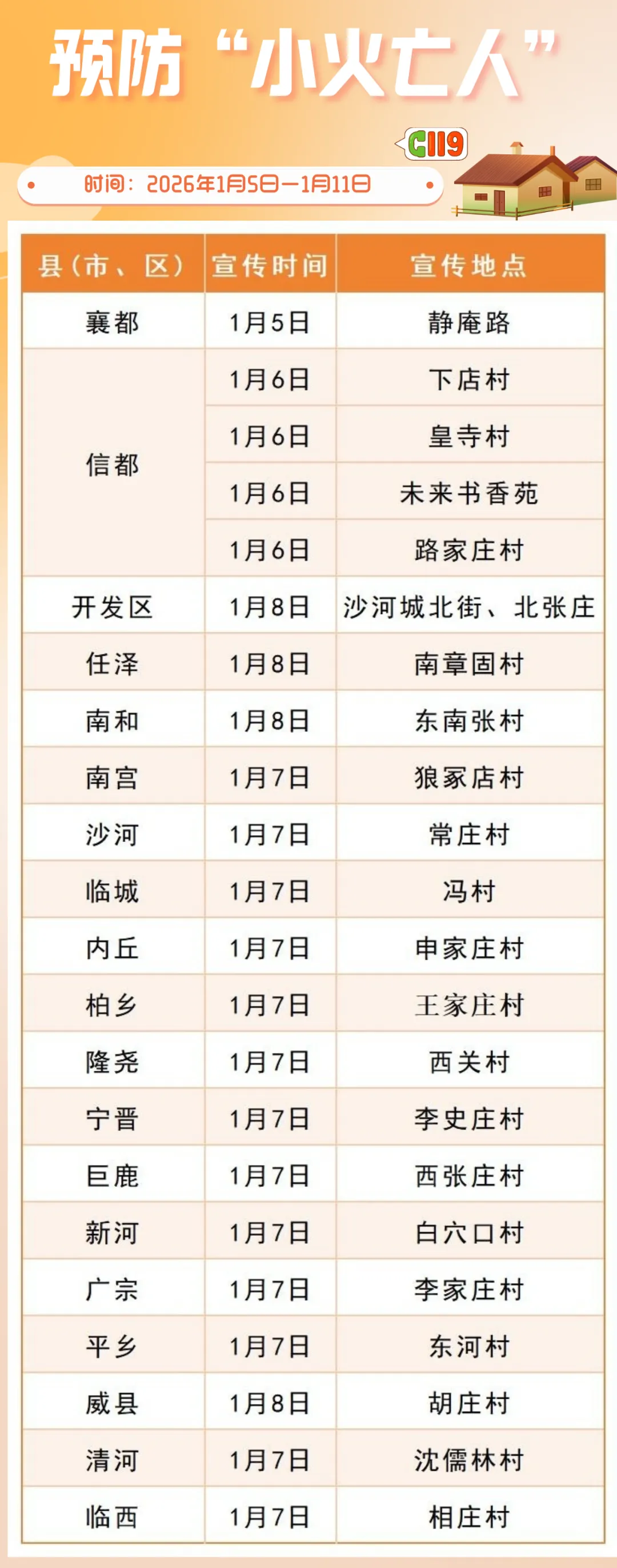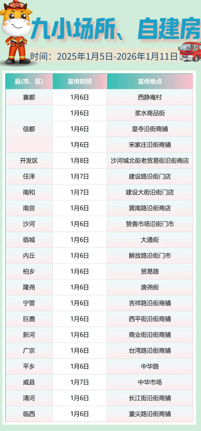 邢台消防宣传“五进”活动周计划(1月5日至11日),事关高层、九小、自建房、企业、农村