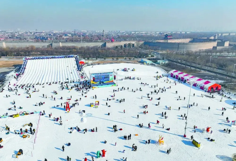 游客在河北省石家庄市正定县长乐门广场冰雪嘉年华体验冰雪运动。 张晓峰 摄