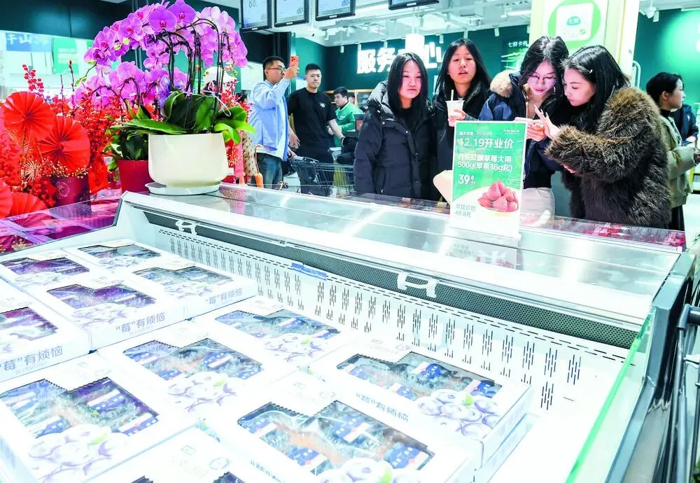 在京东七鲜超市石家庄裕华万达店,各种特色商品吸引了市民前来选购。 郄 磊 摄