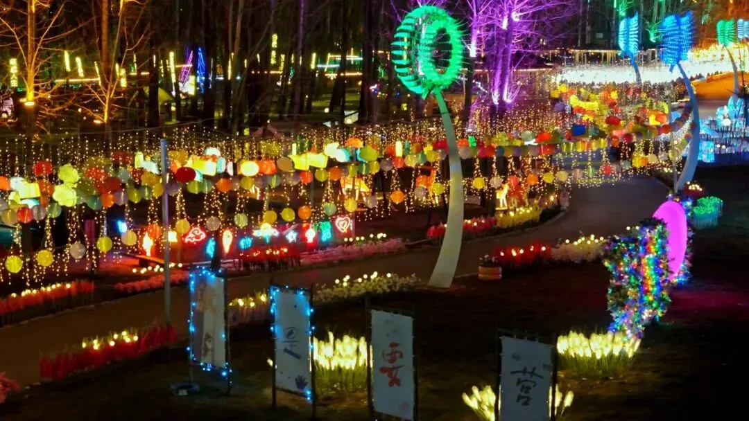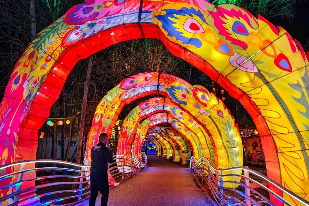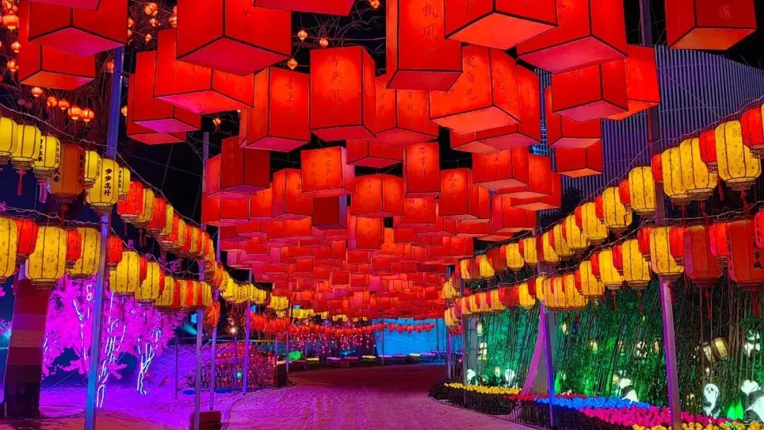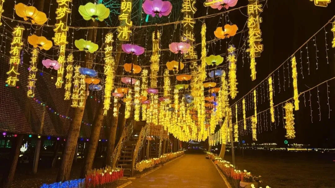 古诗词灯廊里,平仄韵律随灯光流转,让行走都变成一场诗意之旅;