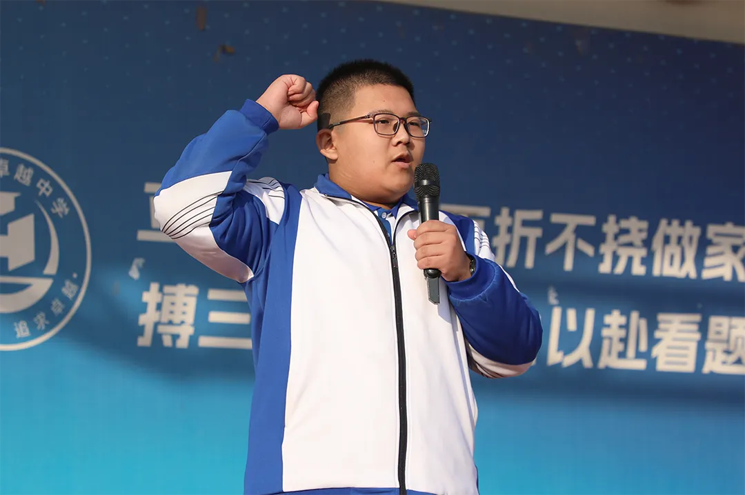 在初二(4)班于世轩同学的带领下,全体学生高举右拳,庄严宣誓。铿锵有力的誓言回荡在校园上空,表达了卓越学子立志成才、报效祖国的坚定决心,以及为实现梦想而砥砺奋进的庄严承诺。