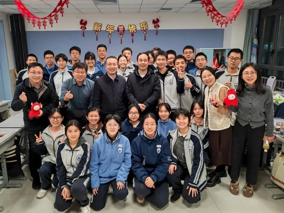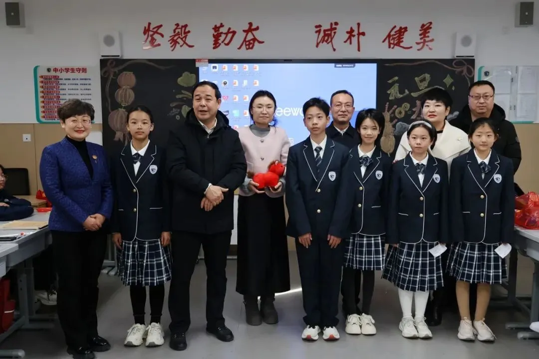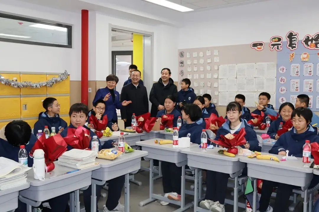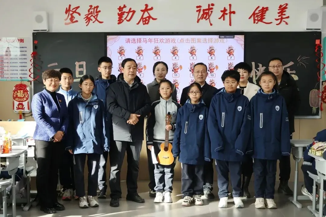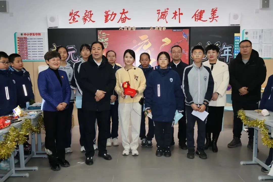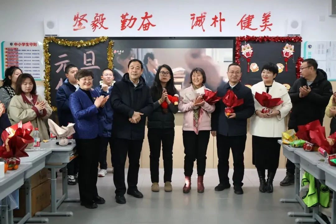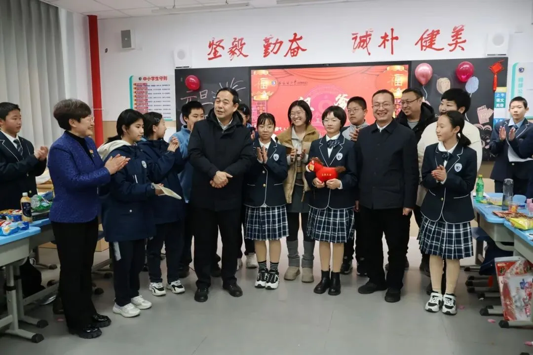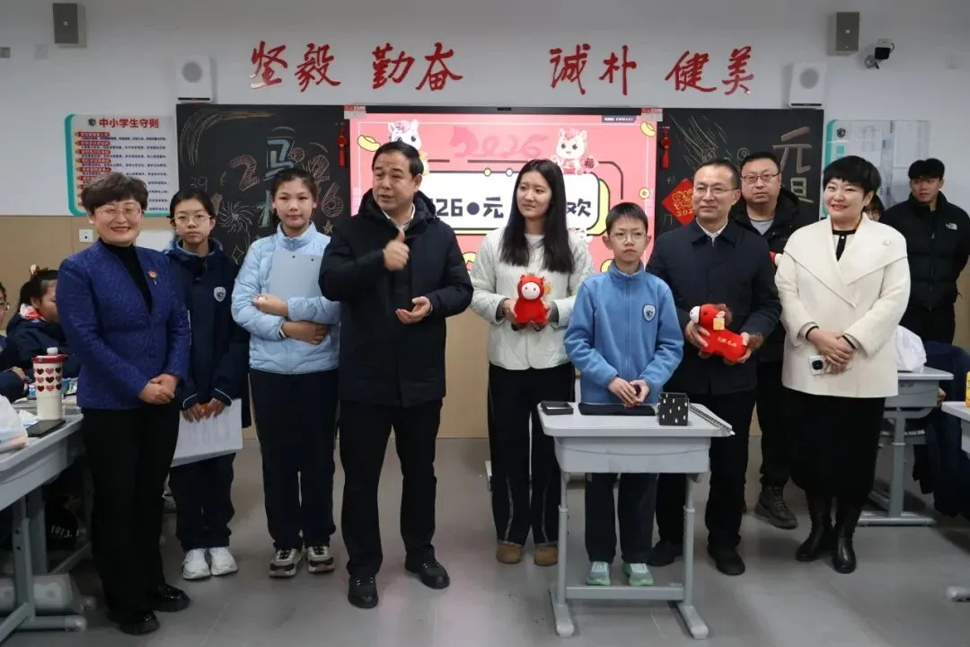 校党委书记宋伟,校长宋泽亮,党委委员王河宁,副校长崔媛媛、刘小杰、夏少君,工会主席狄红艳和年级主任团队走进班级,为师生送上亲切的问候与诚挚的新年祝福,让二中大家庭的温暖流淌在每一处欢声笑语里。