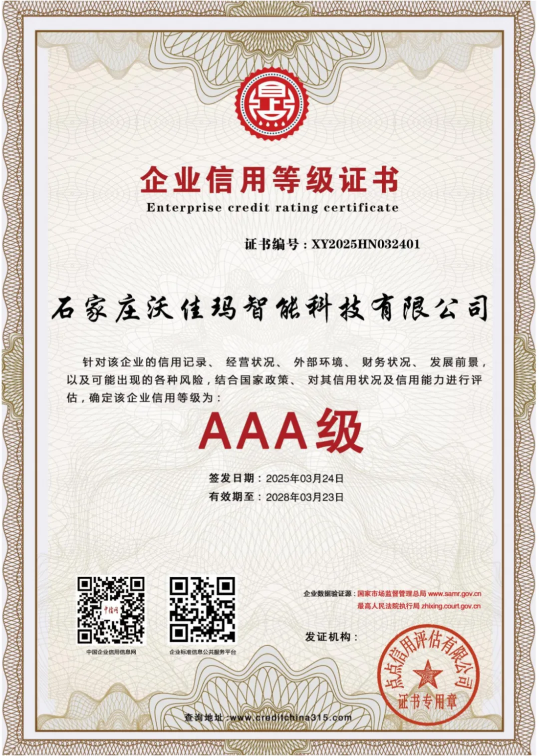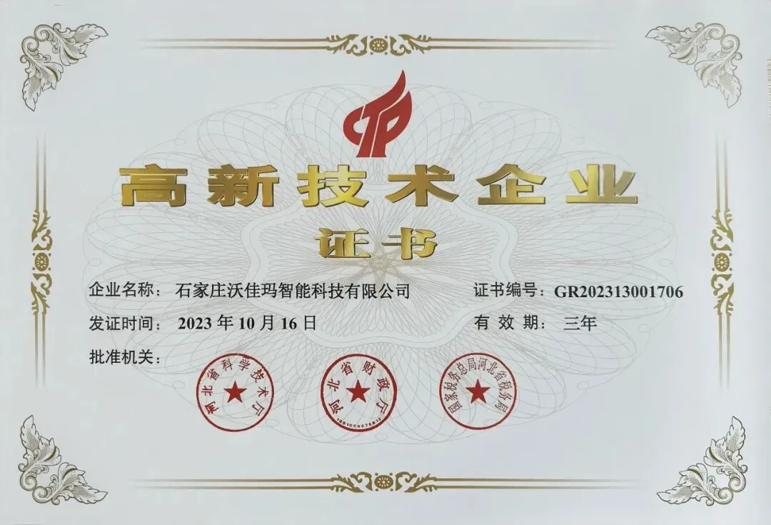 沃佳玛凭借扎实的技术积累与市场表现,已获得多项权威认证,包括: