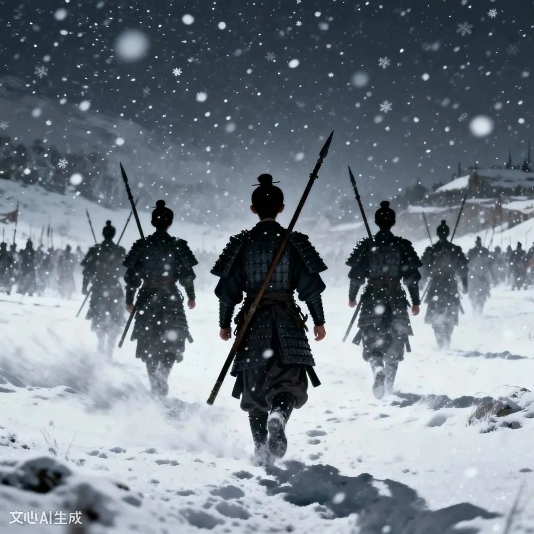 “邯郸少年辈/个个有伎俩/拖枪半夜去/雪片大如掌。”毕竟是唐代的诗人,即使到了唐末,诗的基调依然是昂扬的。诗的后半段让我想到了另一首唐诗: “月黑雁飞高/单于夜遁逃/欲将轻骑逐/大雪满弓刀”。不过,本诗中胡兵是否“夜遁逃”了,不得而知。但“久住”的唐军疲兵依靠“有伎俩”的邯郸少年取得一次夜袭的胜利也是有可能的。这些“邯郸少年辈”是否能全身而退,诗中同样没有讲,但结合汉乐府原诗的悲凉风格,一定是有牺牲的。即使到了唐末,这些“轻薄”的邯郸少年们依然“轻生死”的战斗在最前线。感谢诗人,给我们留下了这幅大雪纷飞的北国边塞的夜晚, 那些拖枪而去的邯郸少年视死如归的壮丽画面。