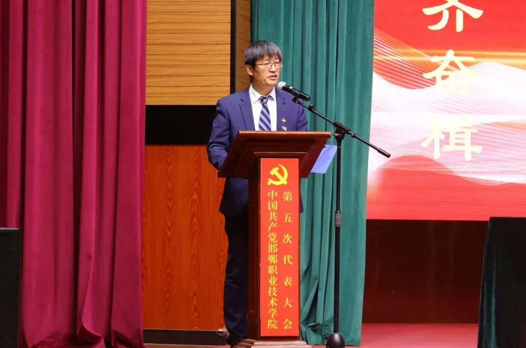 张安兵同志代表中国共产党邯郸职业技术学院第四届委员会向大会作题为《锚定“双高” 聚力“升本” 为建成河北领先的高水平职业强校而不懈奋斗》的报告。报告回顾了第四次党代会以来的工作成绩,分析了学院未来发展面临的新形势新任务,提出了未来五年跨越发展的目标和任务。