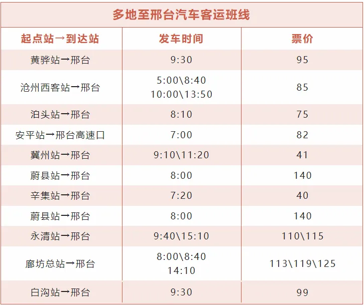 省内多地均有大巴车直达邢台,登录燕赵E行即可购票乘车。