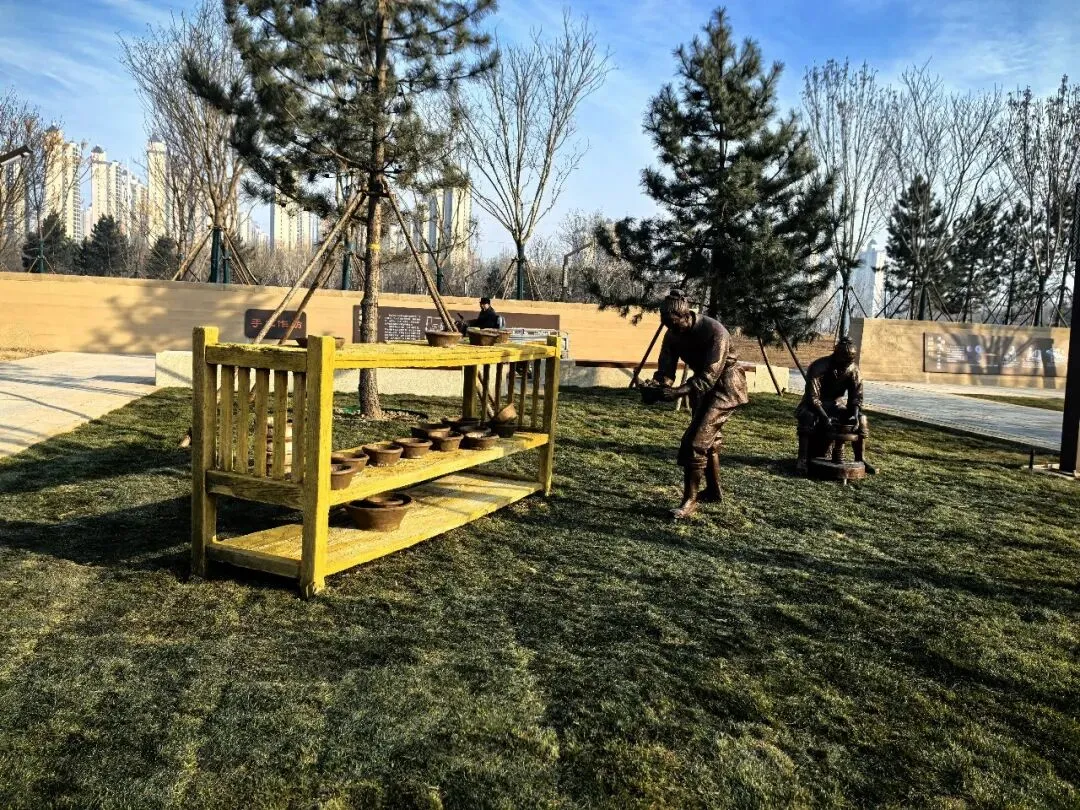 两千多年前,这方热土上的人们是如何生活?如何劳作?在“阡陌东垣”景点,用雕塑的形式还原了汉代农耕图景:农夫驾牛扶犁,鸡鸭于田畔觅食。农耕不仅是生计,更支撑着北部宫殿区的物资供给。铁犁的广泛使用、禽畜的规模化养殖,共同构成东垣古城“以农立城”的经济根基。驻足此处,可触摸两千多年前都城的烟火气,理解农耕文明如何滋养一座古城的繁华。