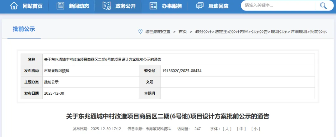 石家庄市自然资源和规划局依河北泰邦房地产开发有限公司关于东兆通城中村改造项目商品区二期(6号地)的报建申请,正在审查设计方案。