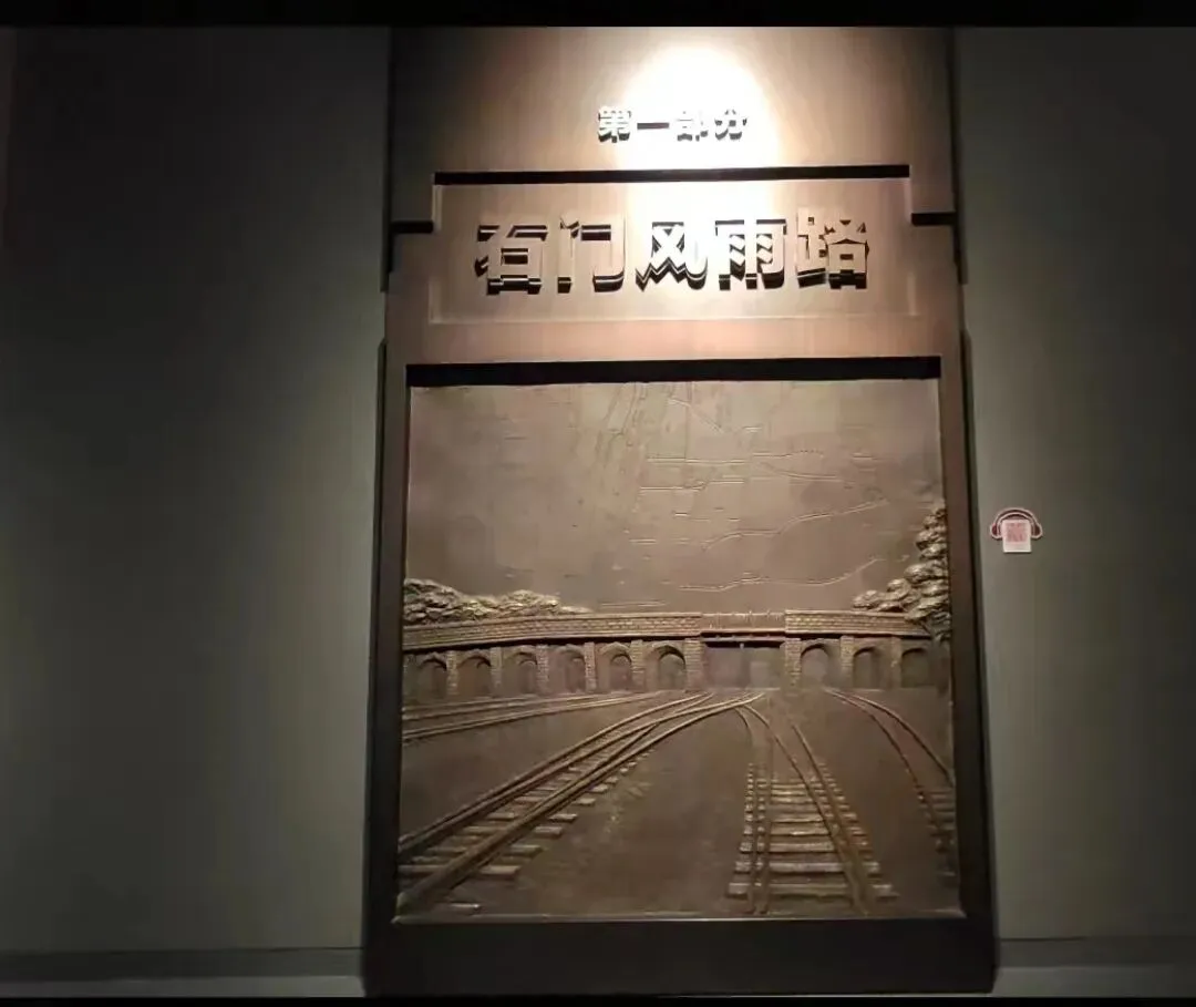 继续前行,一块刻有“第一部分 石门风雨站”的标志牌吸引了我的注意。下方描绘了一幅铁路场景的画面,两条铁轨延伸至远方,诉说着这座城市与火车之间的不解之缘。这里的每一个细节都鲜活地再现了那段历史,仿佛将我们带回了那个充满挑战的时代。