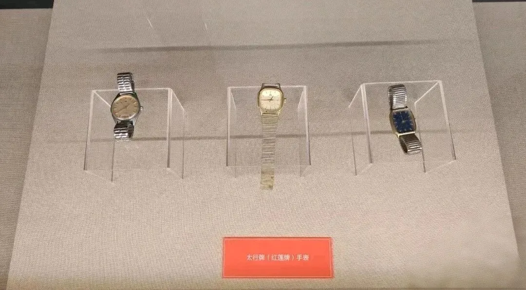 最后,我在博物馆的一角发现了一台老式电视机。它是中国第一台黑白电视机,承载着科技发展的里程碑意义。旁边还有三款不同风格的手表,分别以熊猫、虎等元素命名,体现了地域文化的特色。