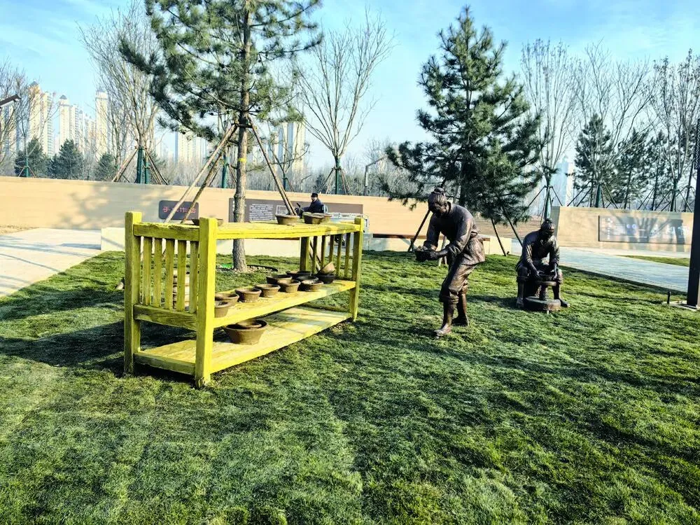 在“东垣溯源”文化景点前,简述着东垣古城的光辉过往;“匠心排水”景点,以东垣古城宫殿区考古发现的砖砌排水系统为原型,清晰还原了浅沟、砖砌水管、沉淀池等构造,将汉代先民科学的给排水智慧直观呈现;不远处,“手工作坊”等场景节点则生动再现古代市井生活的片段。