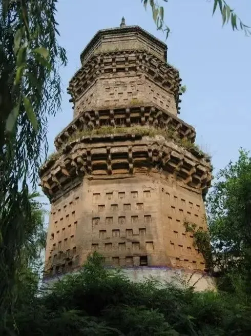 位于元氏县城,始建于金代(1115—1234),距今也是800多年。明成化三年(公元1467年)重修,现存塔体仍为金代遗构。为八角九级密檐式砖塔,通高25.2米。塔基八角形,条石砌筑,上为砖砌八角须弥座,束腰部砖雕团花,塔座上方施砖雕四铺作斗栱承勾栏平座,上置仰莲三重承塔九级。首层塔身高3.6米,四正面做券顶假门,四斜面做方形花棱盲窗,八角施圆形倚柱。二至九层各高1.3米,塔顶收铁铸山蕉、宝珠为刹,上刻明成化三年重修记。