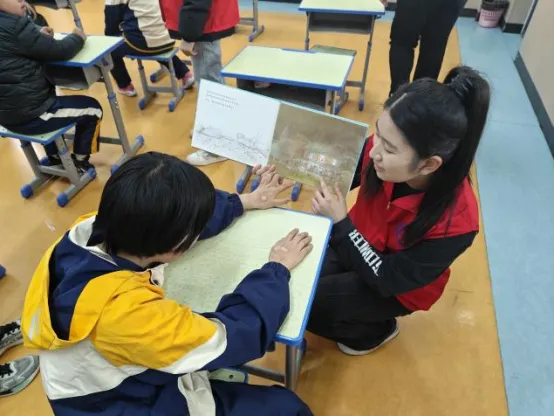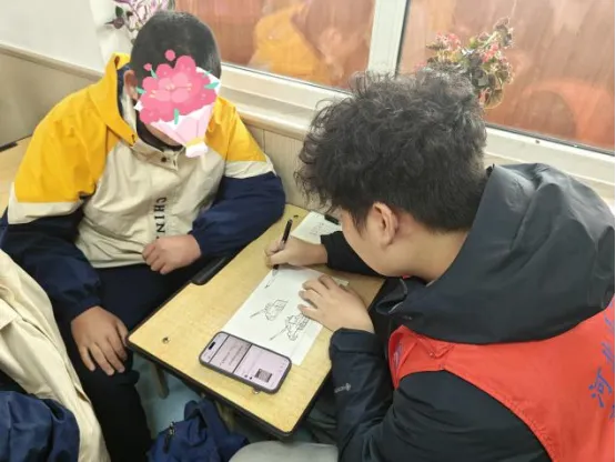 来到特教学校后,志愿者分组行动,分别参与了课堂教学辅助、康复训练协助和课外活动陪伴等工作。在美术课上,志愿者们协助孩子们完成一幅幅充满童真的画作;音乐课上,志愿者们与特教孩子一起互动,带领他们踏进一场奇妙的奥尔夫音乐律动世界;课间娱乐时,志愿者们与孩子们共同游戏、共同玩耍,欢声笑语经久不息。