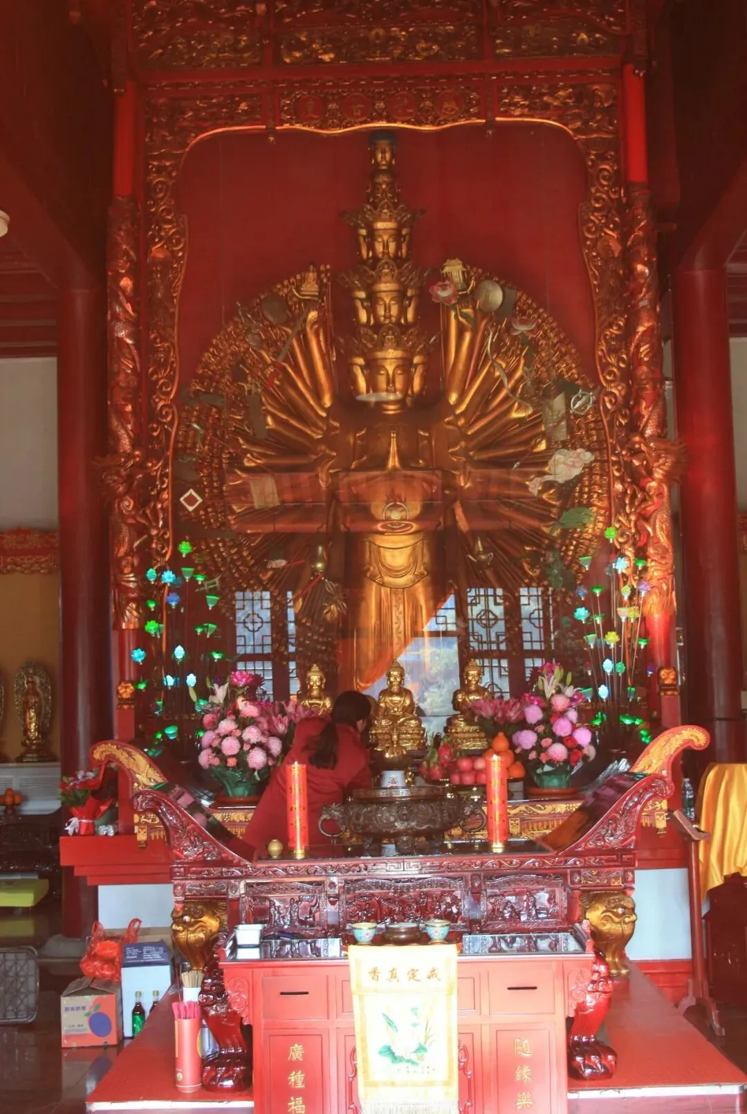 圆通殿,俗称观音殿,内有十一面观音和四十二臂千手千眼观音融合的雕像。也是看到真正的千手观音了。