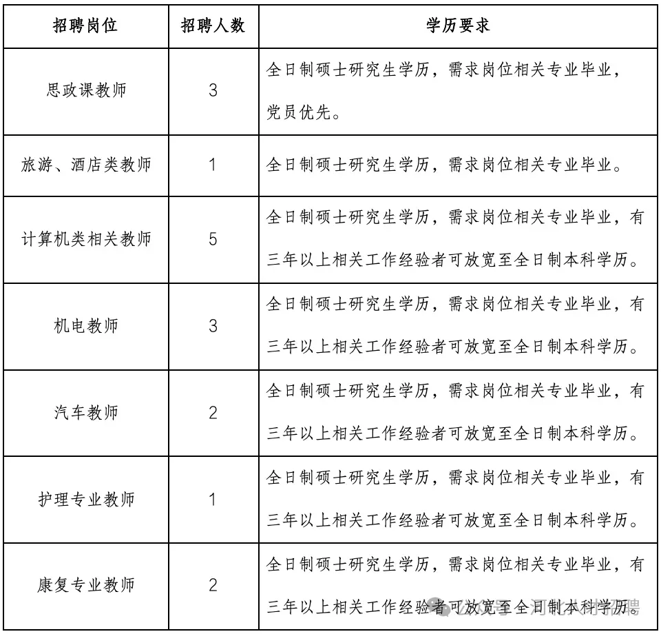 石家庄财经职业学院创办于1999年,是经国家教育部批准设立、具有独立颁发高等教育学历证书资质的省属全日制普通高等职业院校。经过二十余年的发展建设,学校现已跻身教育部职业教育信息化标杆学校建设单位行列,成功入选河北省"双高计划"建设单位,并担任河北省酒店职业教育集团理事长单位。 学校坐落于河北省省会石家庄市,拥有两个现代化校区,总占地面积达3300余亩。学校现设有会计与金融学院、经济管理学院等12个二级教学单位,涵盖财经商贸、电子与信息等13个专业大类。校园建设秉承"智能化、数字化、生态化"理念,配备先进的教学设施设备,建有900余个校内外实训基地,生活配套设施完善,为师生提供了优越的学习生活环境。 在办学成果方面,学校近年来屡获殊荣:先后获评教育部职业院校数字校园试点单位、教育部"一站式"学生社区综合管理模式自主试点单位等国家级荣誉;同时荣获河北省绿色学校、河北省学校安全工作先进集体等省级称号。特别值得一提的是,近五年来学校师生在各级各类竞赛中表现突出,累计斩获国家级、省级奖项近400项,涵盖技能竞赛、教学能力大赛、创新创业大赛等多个领域。 学校始终坚持“做对师生最好的学校”的办学理念,为教职工提供全方位保障:除五险一金等基本福利外,还提供午餐补助、通勤班车、教职工公寓、年度体检等贴心服务;校园内设有教师休息室、爱心妈妈小屋、健身房等设施,充分体现人文关怀。 面向未来,学校将继续深化内涵建设,全面提升教育教学质量,力争实现办学水平的历史性跨越,更好地服务国家重大战略和河北省经济社会发展,为区域产业升级培养更多高素质技术技能人才。 1.具有中华人民共和国国籍,拥护中国共产党,遵纪守法,具备所聘岗位需要的政治素养和文化素质。 2.具有良好的职业道德与学术道德,热爱教育事业,服从组织安排,有团队意识、团结协作精神、优秀的创新能力和发展潜力。 3.身心健康,仪表端庄,具有良好的语言表达和沟通能力。 1.曾因犯罪受过刑事处罚或受行政处罚以及被开除公职的。 5.提供住宿、午餐、电话补助、节日福利、生日福利、通勤班车、教职工体检、教师休息室等; 6.工作时间:上午8:00—12:00 下午13:30—16:50; 本次招聘教师均与石家庄财经职业学院签订聘用合同,此次招聘委托第三方人力资源机构完成招聘流程,招聘流程如下: 2025年12月19日通过“ikao123.cn”“爱考招聘”公众号发布公告。 本次招聘只采取网上报名方式,不接受现场报名。每人限报考一个岗位。采取网上报名、网上打印《准考证》的形式进行。 报名时间:2025年12月19日至2026年1月11日16:00; (1)进入网页点击“求职者登录/注册”完成个人账号注册并进行登录。 (2)点击进入对应公告报名,选择招聘岗位--点击“立即报名”填写--点击“提交”完成报名。 (1)考生开始报名前,须完全了解本次招聘政策和拟报考岗位条件,然后按步骤进行具体操作。 (2)规范填写报名信息,上传的电子照片要符合要求(电子照片要求:近期、免冠、正面、证件照,格式为jpg格式),否则将被报名系统自动拒绝。 (3)请完善填写每一项表单,在相关资格证书可上传岗位所需相关证明材料。 (4)每名应聘者限报考一个岗位。为避免报名后期网络拥堵,请应聘者尽早报名。本次应聘实行诚信报名机制,应聘者必须对提交审核报名信息的真实性负责。资格审核贯穿应聘工作全过程,在任何环节发现应聘者不符合应聘条件的,一经查实,立即取消应聘资格,有弄虚作假行为的要追究责任。 应聘者提交报名后,系统将在1个工作日内反馈报名结果,应聘者可在登录网站进行查看。待审核及审核通过状态下无法再修改报名信息,审核结果为“审核未通过”者,可根据反馈原因修改信息后重新提交审核。 审核通过的应聘者可在“费用支付”点击进行扫码缴费。报名费100元/人。此费用为报名费,请认真核查信息,一经缴费因个人原因,一律不予退费。特别注意:支付成功后,视为完成报名,未按期缴费者视为放弃报考。 面试方式:结构化面试、答辩、试讲等方式进行,试讲需准备15-20分钟板书试讲,试讲内容应与所应聘教师岗位的专业相近或相似。自行选题。满分100分,面试合格分数线为60分,凡低于面试合格分数线的考生不予录用。 根据总成绩排名1:1比例确定拟入职人员名单,按照石家庄财经职业学校要求进行审查,具体时间、地点由学校另行通知,未通过审查的人员将按照成绩顺序进行补录。 (一)网上报名实行严格的自律机制,应聘者须确保本人提供信息的真实性。凡弄虚作假者,一经发现,即取消录用资格。已经录用的,解除与其签订的劳动合同。问题严重的,报有关部门追究责任。 (二)考生务必时刻关注网站信息,凡在规定时间内未能完成相关操作或未能参加招聘活动的,视为自动放弃。考生报名时,务必填写本人常用的联系方式,并在招聘期间保持手机等通讯设备畅通,因通讯不畅错过考试、考察、递补等招聘环节的,自行承担责任。因个人原因造成证件丢失、被他人盗用或信息被恶意篡改而影响招聘的,自行承担责任。 (三)本次公开招聘工作实行全过程监督。如有违纪违规行为,一经发现,严肃查处。 (四)本次公开招聘工作由石家庄信德达人力资源服务有限公司统一组织实施。 (五)本次招聘考试不指定考试辅导用书,不举办、不