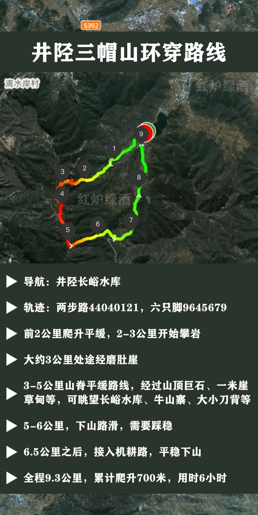 其实三帽山环线非常非常多,从这里可以穿到牛山寨、金华寺、将军垴、大小刀背、五峰山……那些都是大神们走的,我们走个小环线就可以了。